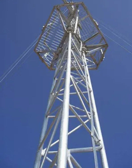 Trójrurowa wieża kątowa komunikacyjna jest podparta przez trzy główne stalowe rury, rozmieszczone w trójkącie równobocznym, tworząc stabilną konstrukcję mechaniczną. Elementy wieży wykonane są ze stali konstrukcyjnej o wysokiej wytrzymałości i niskiej zawartości stopu, takiej jak Q355/Q235B, a elementy są mocno połączone za pomocą precyzyjnego spawania i technologii połączeń śrubowych. Korpus wieży jest wyposażony w poprzeczne przepony i materiały diagonalne na określonych wysokościach, aby zwiększyć ogólną odporność na skręcanie i wiatr; standardowe wsporniki podajników i platformy konserwacyjne są wyposażone w celu ułatwienia układania kabli komunikacyjnych i późniejszej konserwacji sprzętu oraz zapewnienia bezpieczeństwa personelu operacyjnego i konserwacyjnego. Konstrukcja wieży jest mocna i stabilna, zdolna wytrzymać próby klęsk żywiołowych, takich jak silne wiatry i trzęsienia ziemi, oraz zapewnić stabilną transmisję sygnałów komunikacyjnych w różnych trudnych warunkach. Jej unikalna konstrukcja trójrurowa nie tylko zwiększa wytrzymałość korpusu wieży, ale także optymalizuje układ przestrzenny, który może pomieścić wiele anten komunikacyjnych, aby zaspokoić potrzeby różnych operatorów i wielu technologii komunikacyjnych.